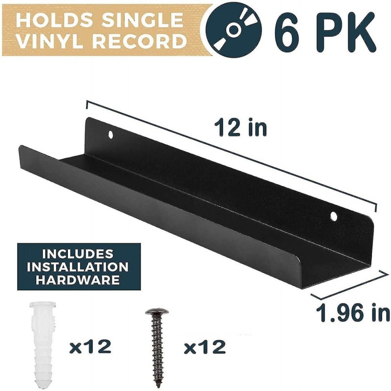Set di 6 mensole trasparenti per dischi in vinile da 30,5 x 4,3 x 5 cm con 12 viti di montaggio. Sono trasparenti per mettere in risalto la copertina dell'album, così puoi vederla facilmente una volta installato. Un must per gli amanti della musica che cercano un sistema espositivo elegante per grandi collezioni di dischi in vinile.